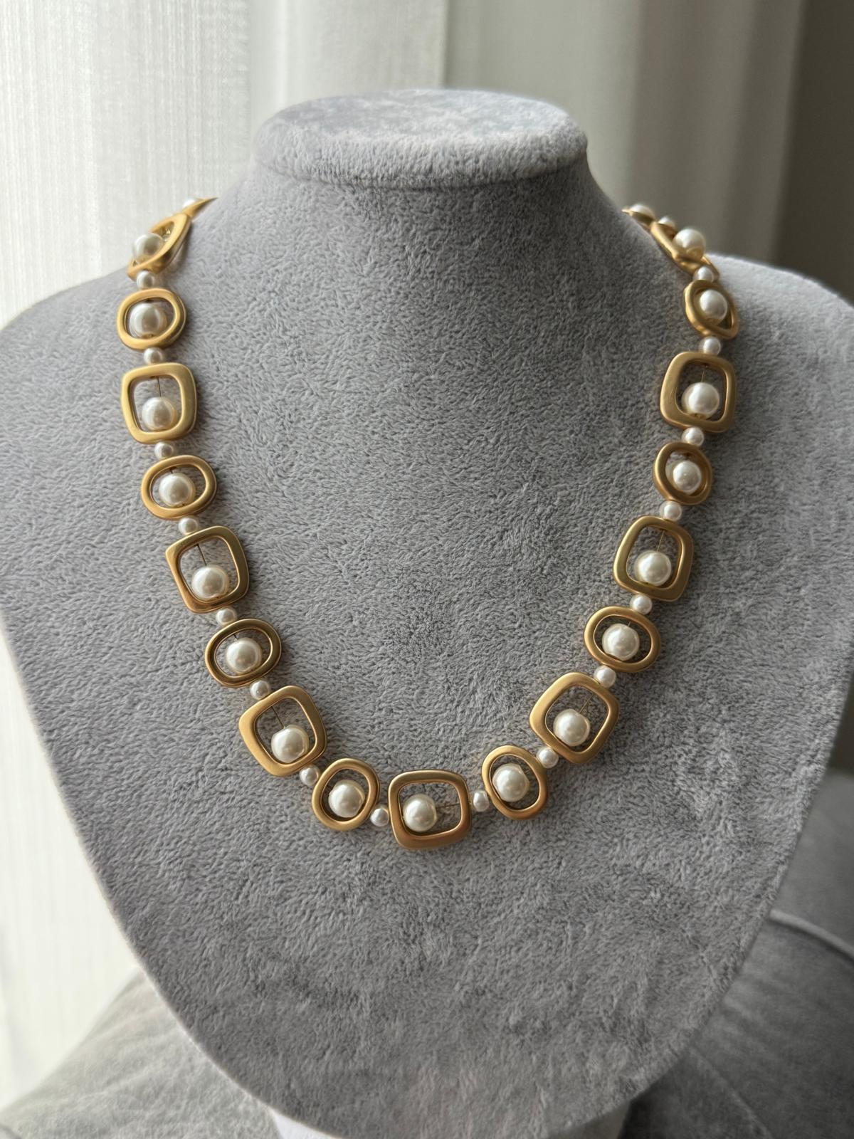 MAT DOKULU İNCİ DETAY KOLYE