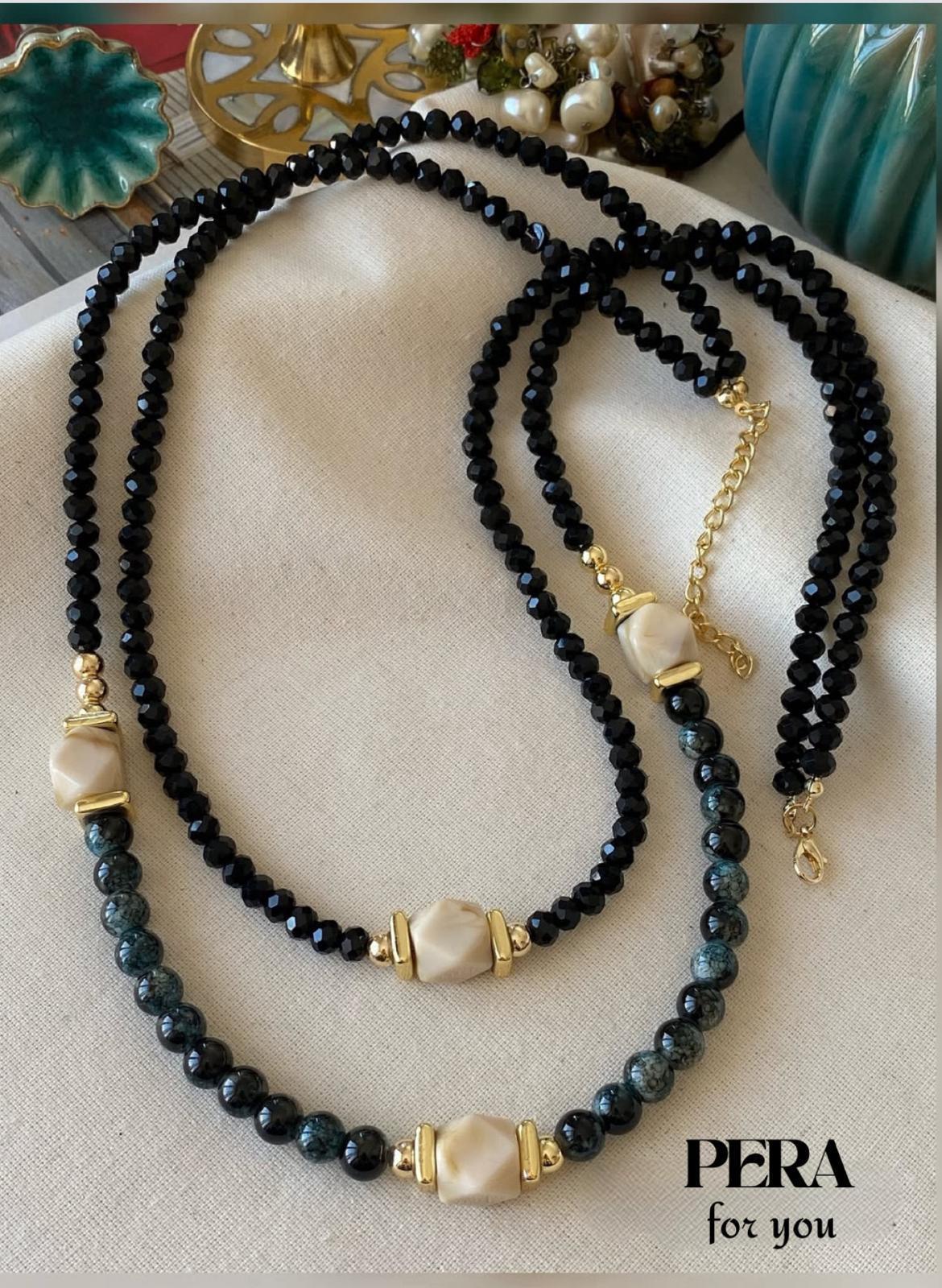 SİYAH BONCUK PERA KOLYE